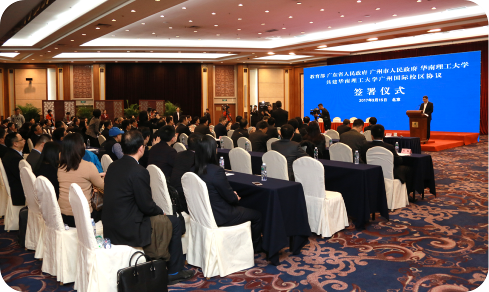 ▲ 2017年3月15日 教育部、广东省、广州市、华南理工大学签署四方共建广州国际校区协议